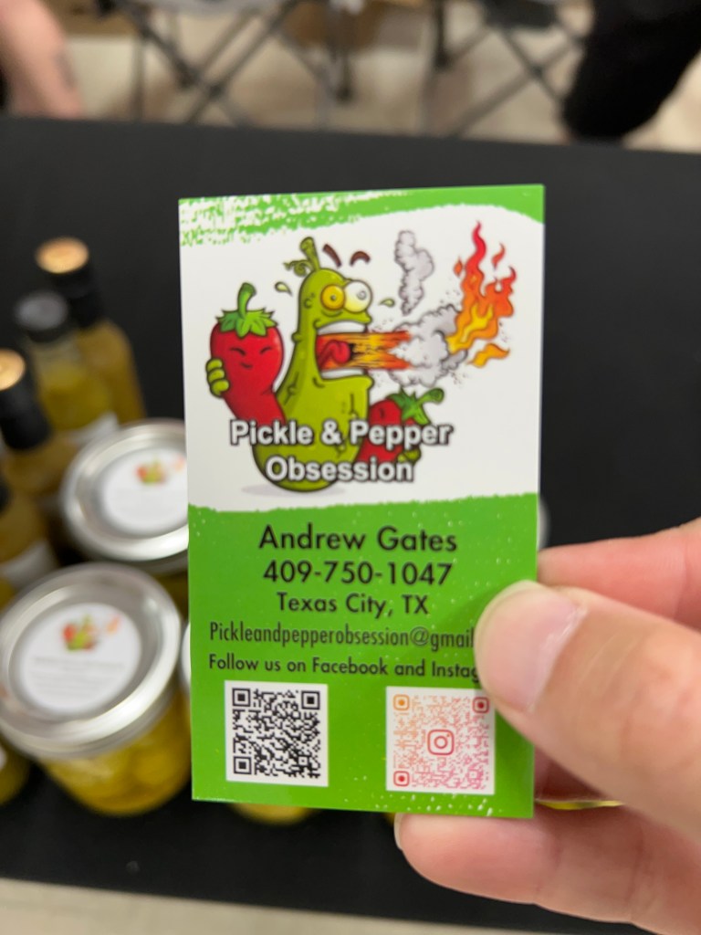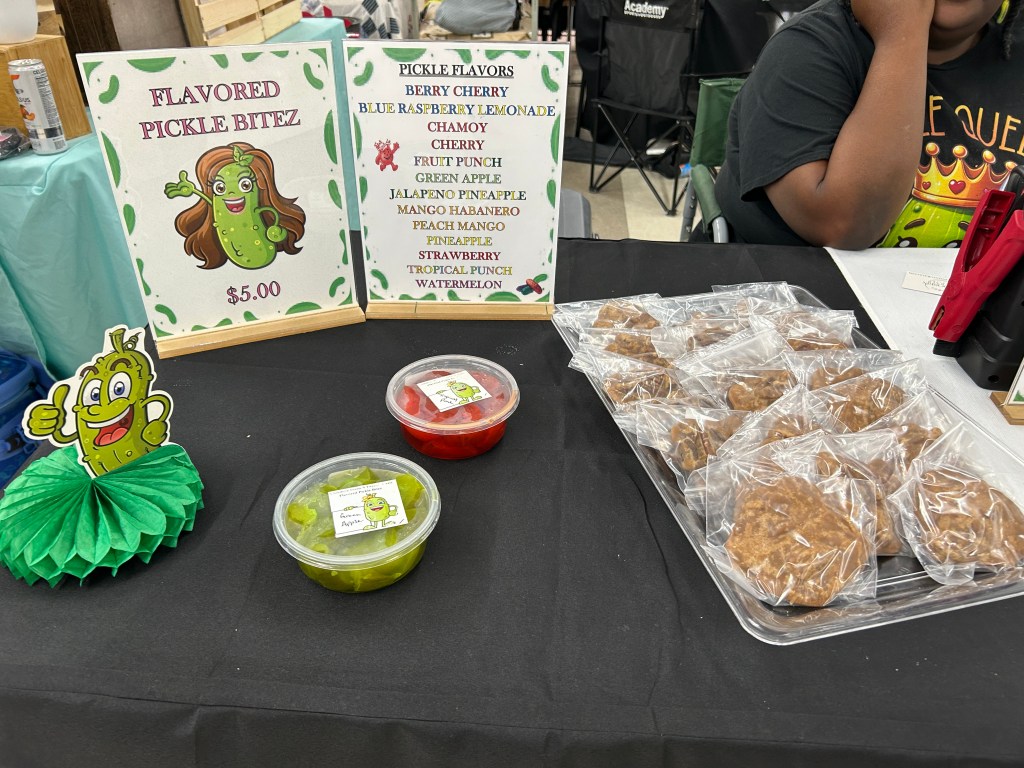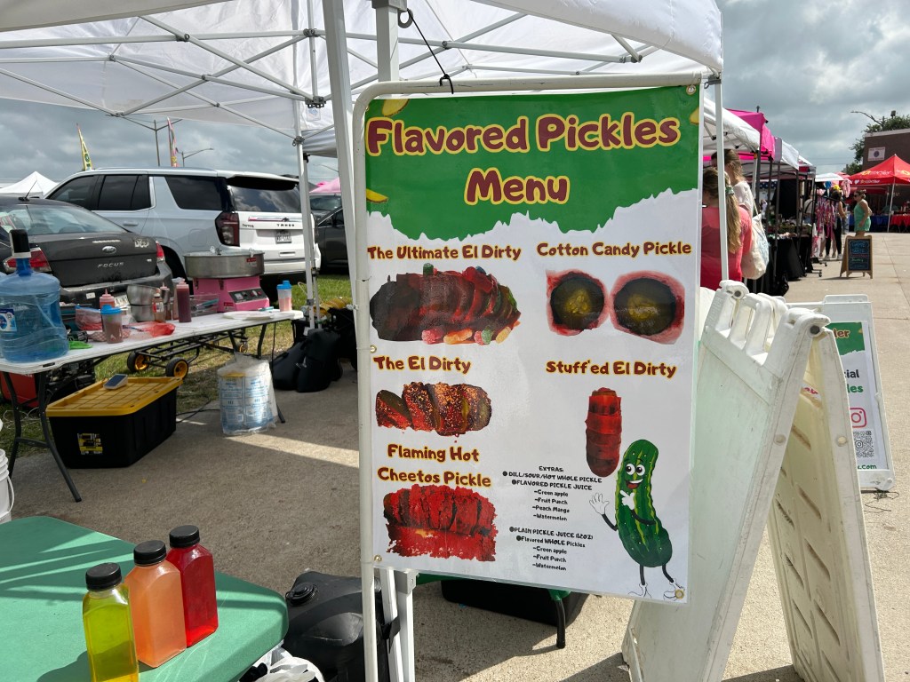 More than 200 vendors were set up across the Galveston County Fairgrounds. Many sold pickle-themed items, including flavored pickles, fried snacks, and even pickle pizza. Others offered goods and services not related to pickles, like homemade clothing, self-defense information for women, and bottle lights being sold to raise scholarship money in memory of a vendor’s late daughter.