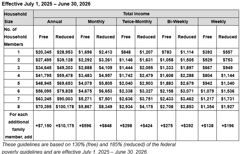 According to Fred Walker, Director of Child Nutrition Services, eligibility is based on household income and size.
