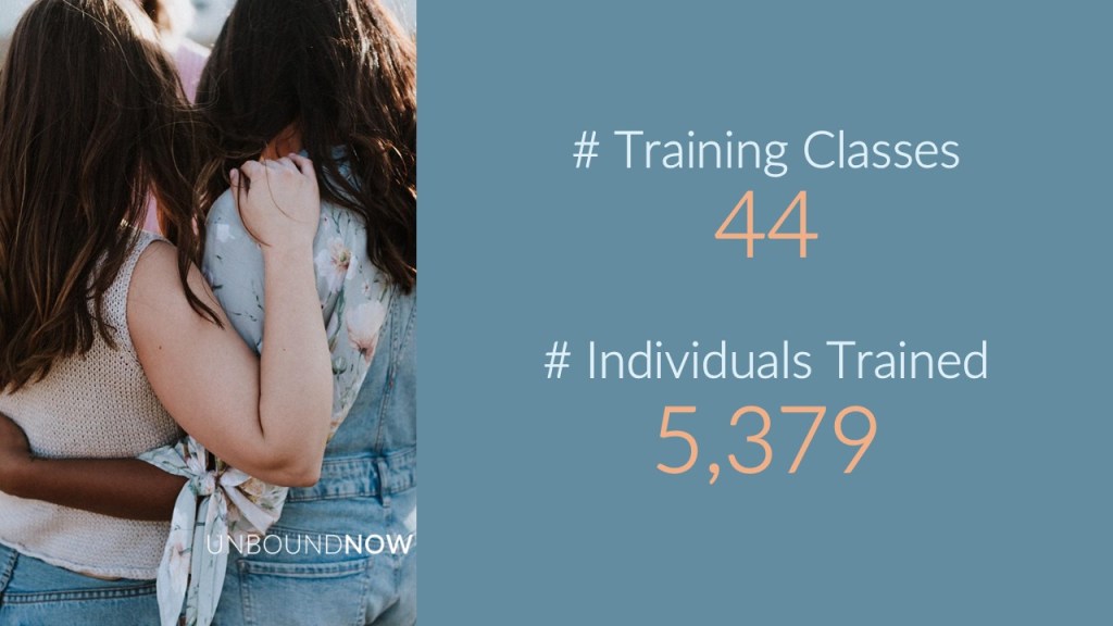 Galansky said the results of that pilot strongly confirmed the need for broader action. Over the course of the program, Unbound Now conducted 44 professional trainings for schools, first responders, churches, and community groups, reaching roughly 5,400 people. They also held 46 youth education classes in local schools, teaching 176 students about trafficking risks, grooming behaviors, and how recruitment often occurs.