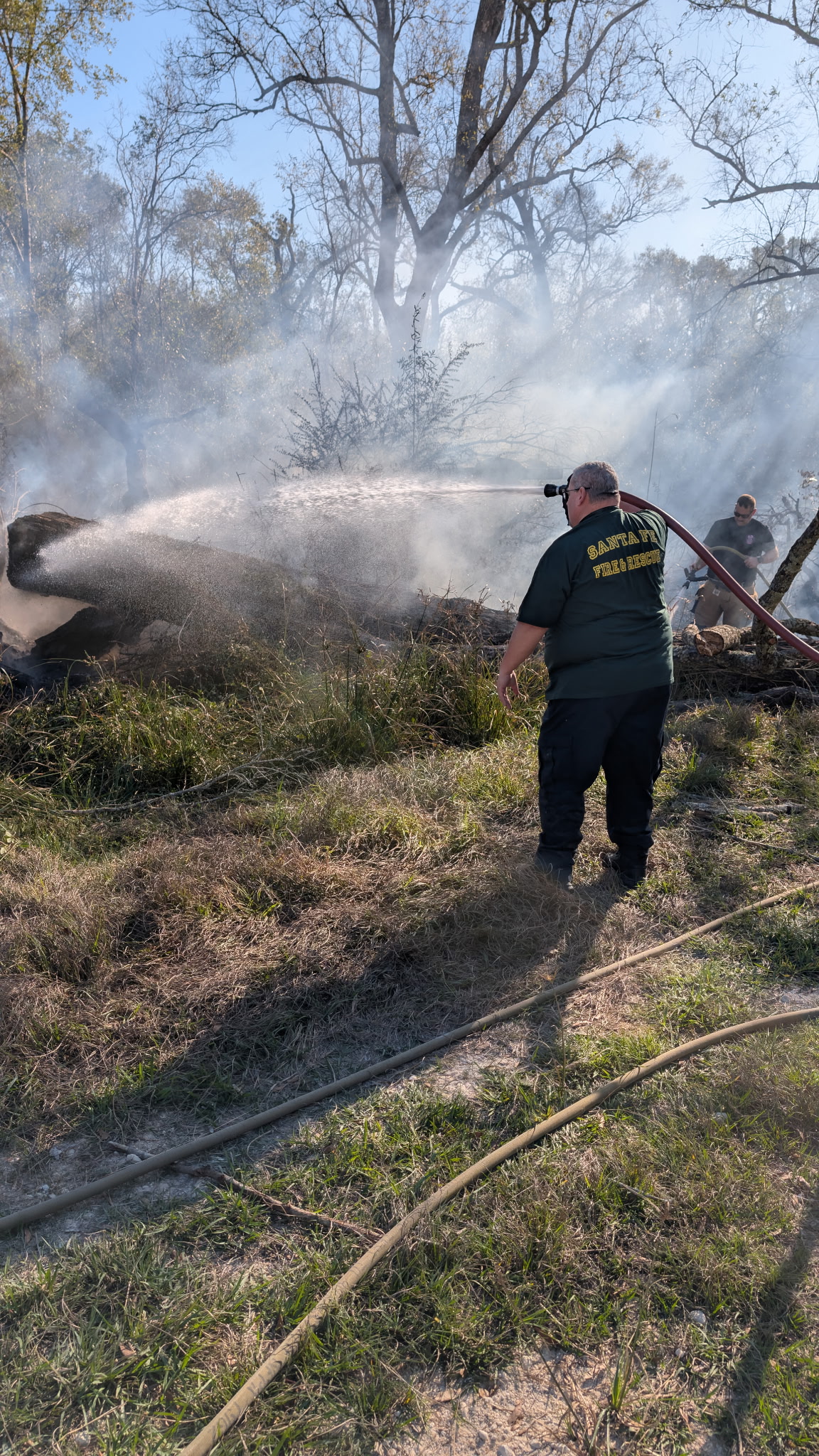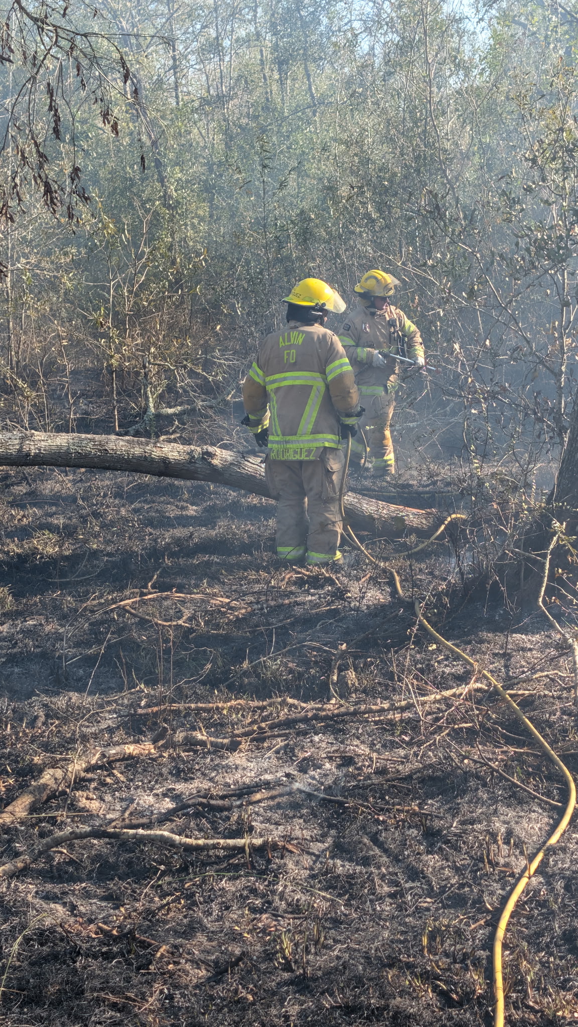 The initial call came in around 1:15 p.m. in the area of Cedro Avenue. Alvin Volunteer Fire Department units arrived to find a fast-moving brush fire and requested mutual aid from Santa Fe, Liverpool, and Danbury fire departments to help contain the flames.