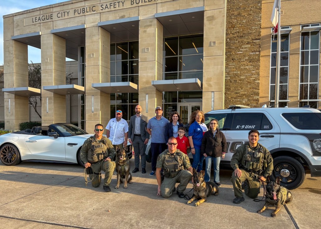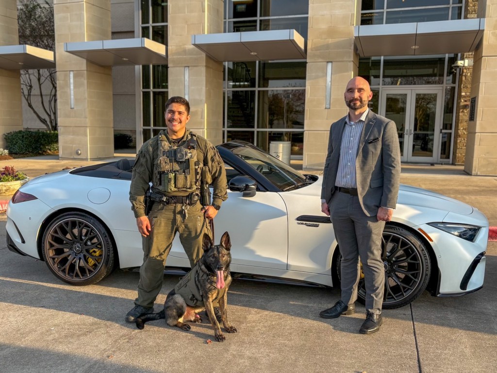 During the event, Officer McIntyre explained the purpose and design of the ballistic vest and how it is intended to enhance safety for police service dogs. Representatives from the Fazio family and Mercedes-Benz of Clear Lake, including service director Daniel Reicherts, were invited to attend.