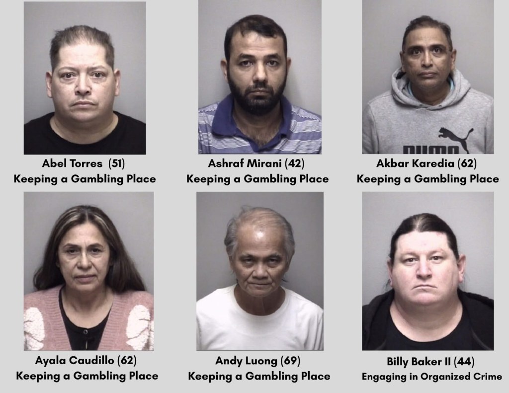 According to the Galveston County Sheriff’s Office, 33 people were arrested, 749 gambling machines were seized and more than $417,000 was confiscated following a coordinated enforcement operation led by the Galveston County Organized Crime Task Force.
